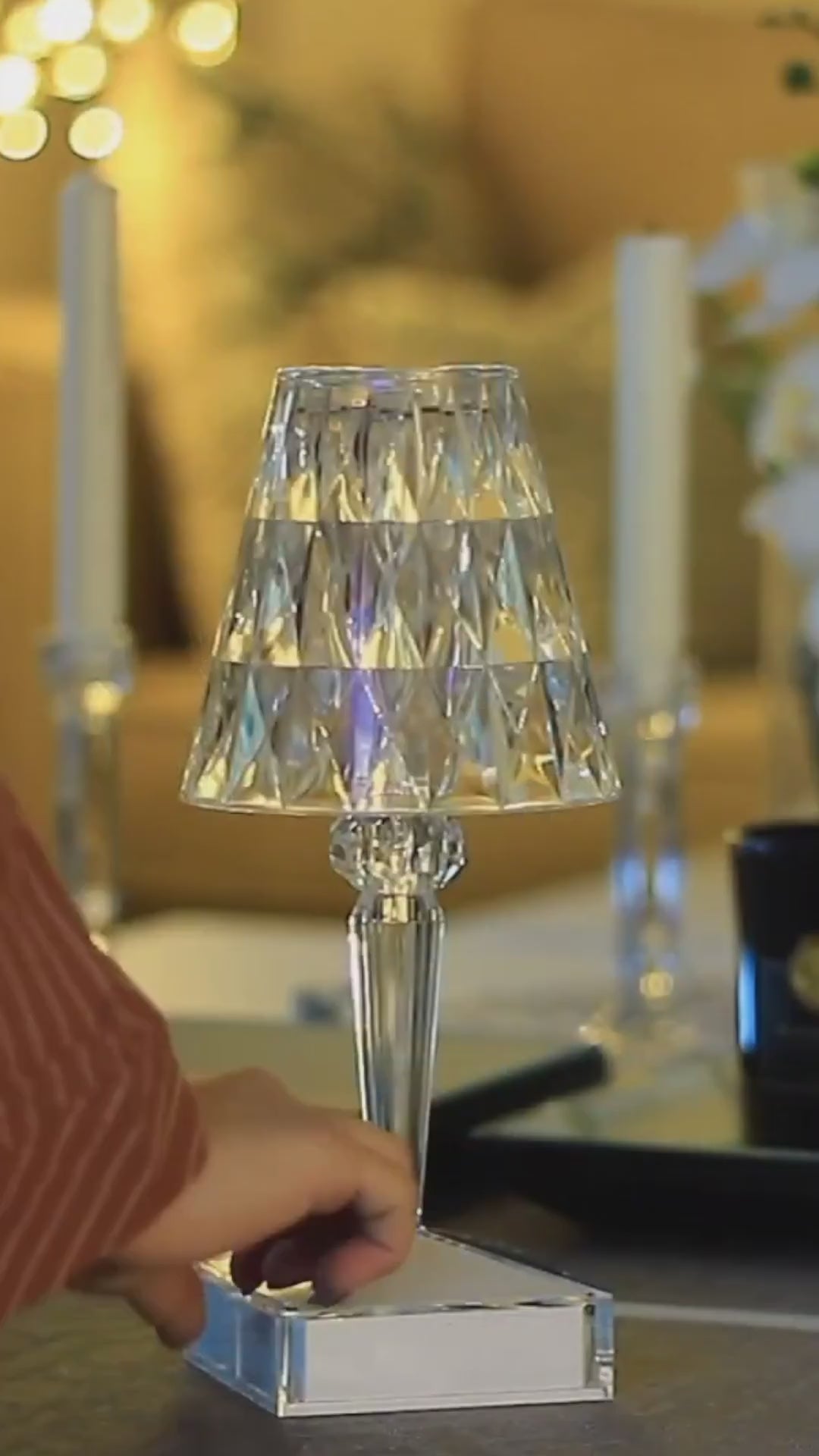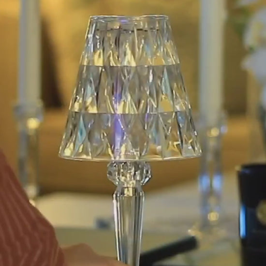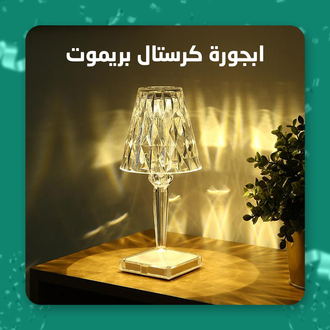 ابجورة كريستال قابلة لإعادة الشحن مع 3 ألوان إضاءة وتتحكم بها باللمس أو جهاز التحكم عن بعد. توفر إضاءة قابلة للتعديل مع بطارية تدوم حتى 10 ساعات وتصميم أنيق يناسب أي مكان.