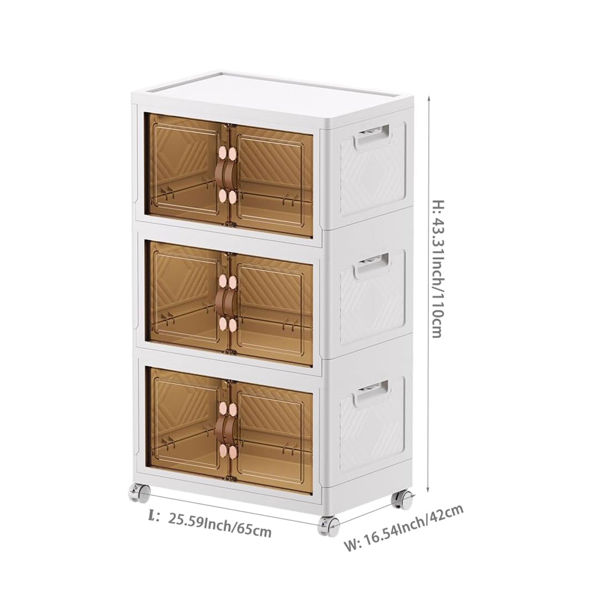 دولاب بلاستيك ثلاثي الطوابق سهل التركيب بدون أدوات، مثالي للمساحات الصغيرة. يحافظ على نظافة أغراضك بفضل الإغلاق المغناطيسي المحكم، ويضيف مساحة تخزين منظمة في أي زاوية بالبيت. مصنوع من بلاستيك قوي مقاوم للكسر، بأبعاد مناسبة 54×39×36 سم. ضمان 14 يوم من شركة دوزن.
