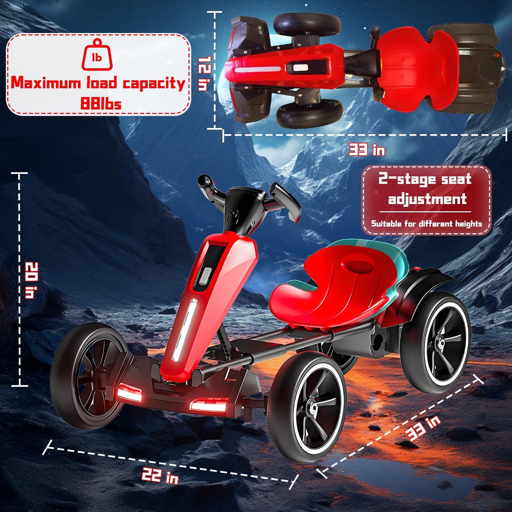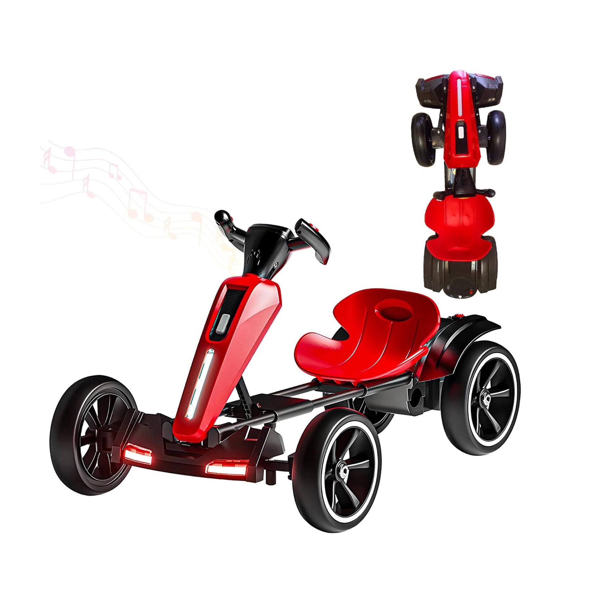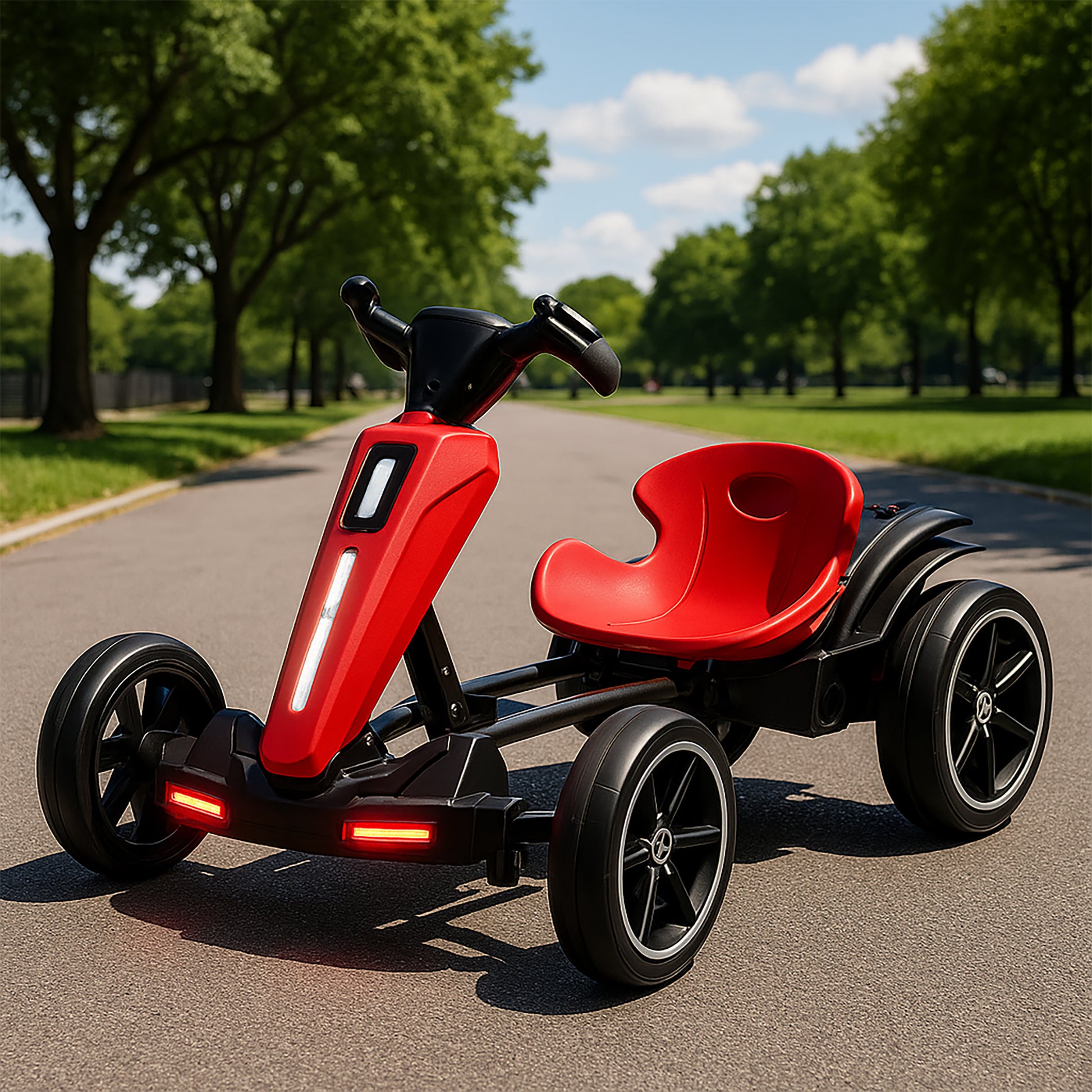 تقدم عربة الأطفال الكهربائية الرباعية الدفع القابلة للطي تجربة قيادة آمنة وممتعة للصغار. تتحرك بسهولة إلى الأمام والخلف عبر الدركسيون المريح، مع نظام صدمات يمتص الصدمات ليمنح رحلة سلسة على مختلف الأرضيات كالخلط من الرصيف إلى البلاط. مقعد مريح وقابل للتعديل حسب طول الطفل يضمن دعمًا مثاليًا للظهر، بينما تكتمل المتعة بإضاءة LED جذابة وأزرار تحكم بالصوت والأنوار والموسيقى على الدركسيون. تصميمها القابل للطي بخطوة واحدة يسهل التخزين والتنقل، مع بطارية قوية وموتور 390W يوفران أداء ثابتًا وسرعة تصل إلى 3 ميل في الساعة. مناسبة للأطفال من 3 سنوات فما فوق وتتحمل حتى 40 كجم، لتكون الخيار الأمثل لانطلاقة آمنة ومليئة بالمرح.