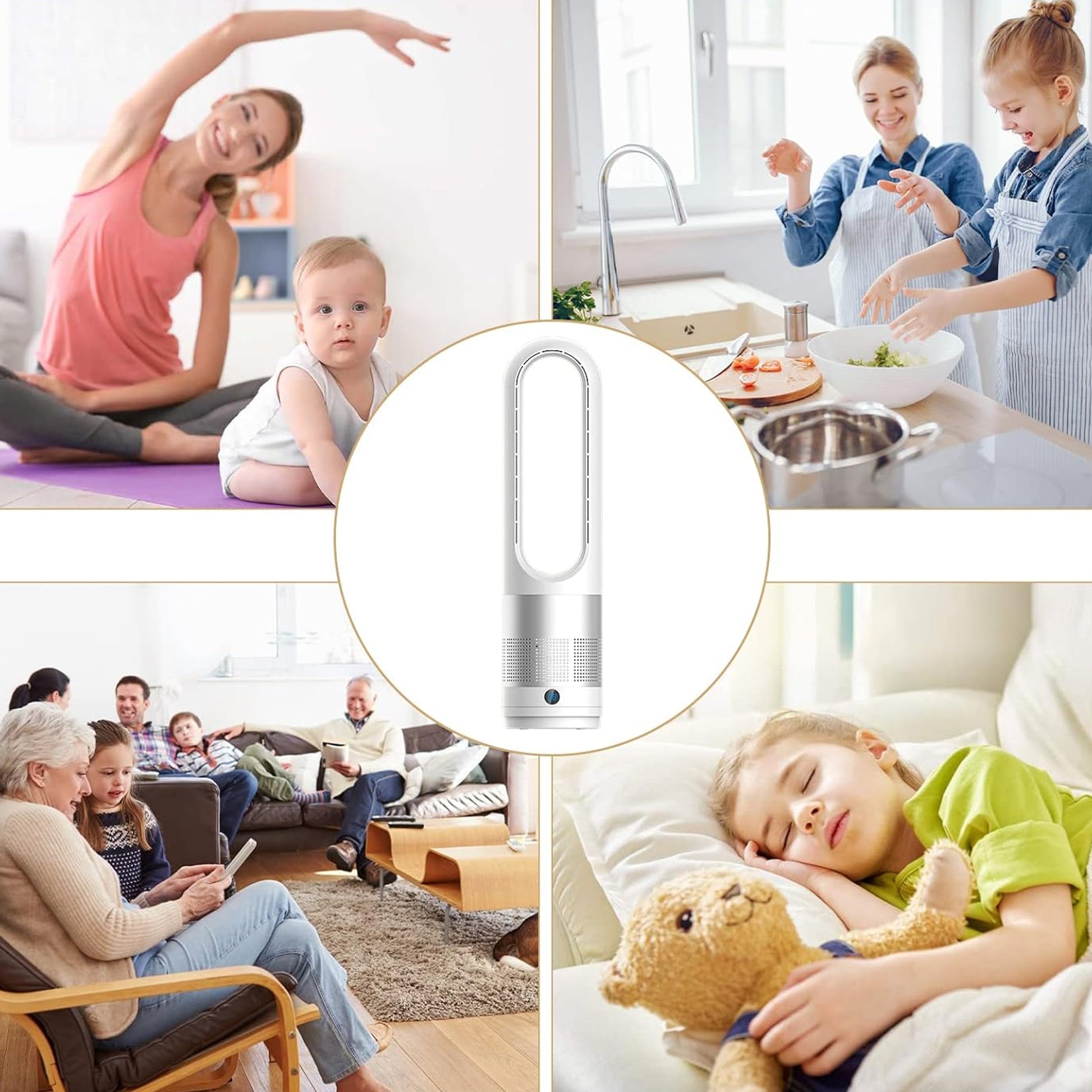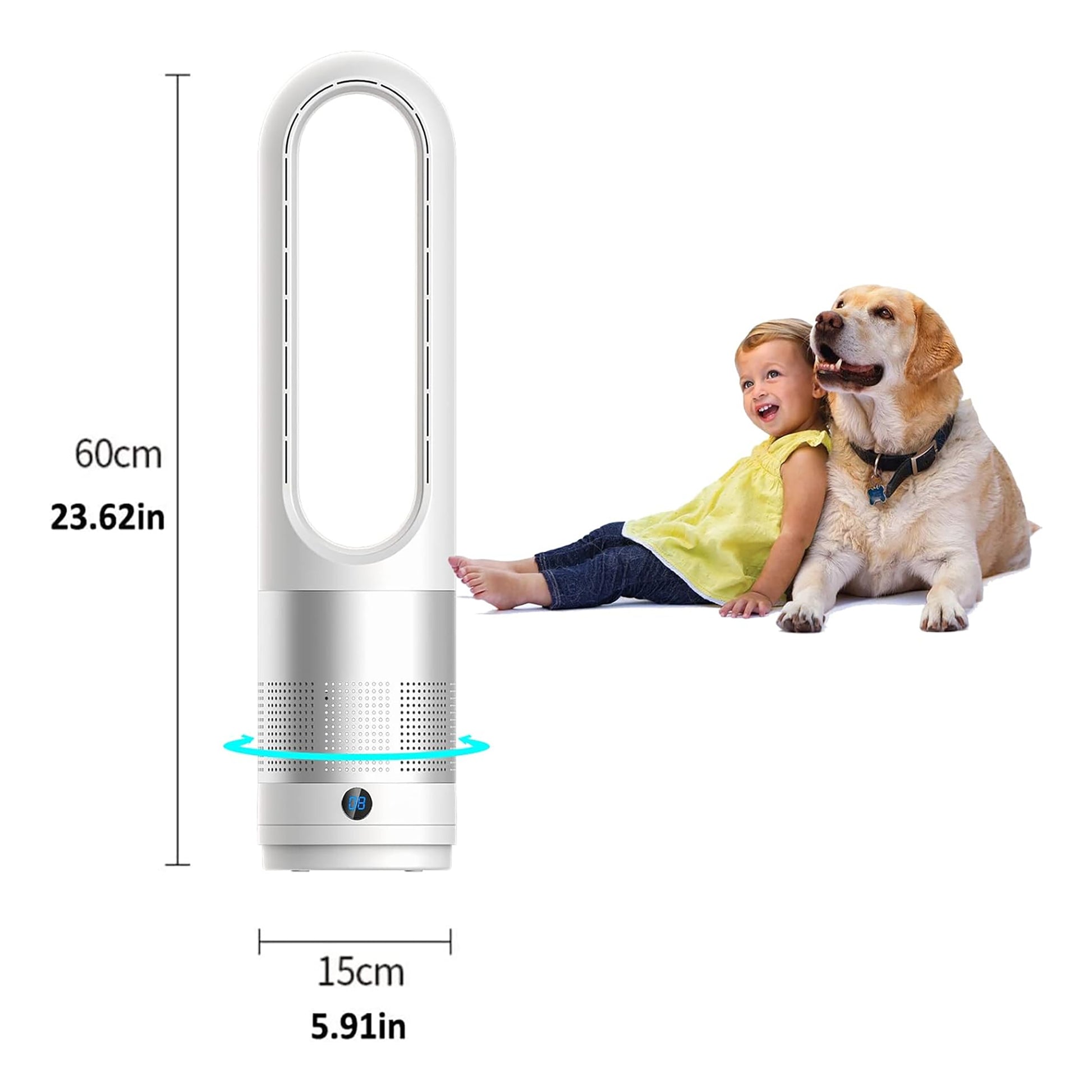 مروحة ومنقي هواء بدون شفرات آمنة للأطفال والحيوانات، بتصميم نحيف يوفّر مساحة. تتأرجح 80 درجة لتوزيع الهواء، وتعمل بـ8 سرعات هادئة جداً (أقل من 40 ديسيبل). مزودة بمؤقت من 1 إلى 8 ساعات وشاشة LED سهلة الاستخدام، مع جهاز تحكم عن بعد للراحة التامة. تستهلك طاقة منخفضة وسهلة التنظيف، لتجربة تبريد نظيفة ومريحة في أي مكان.